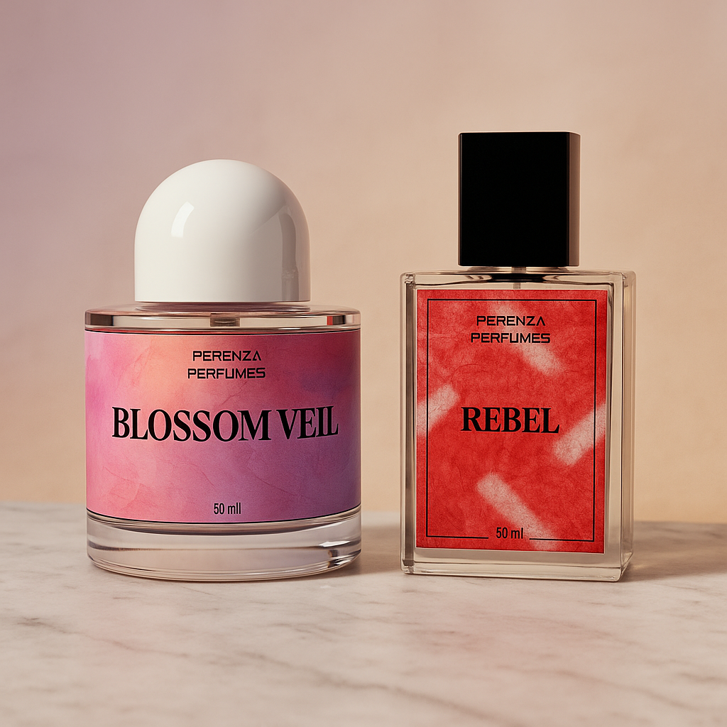 Discover charm, strength, and passion with the Blossom Veil & Rebel Bundle from Perenza Perfumes.