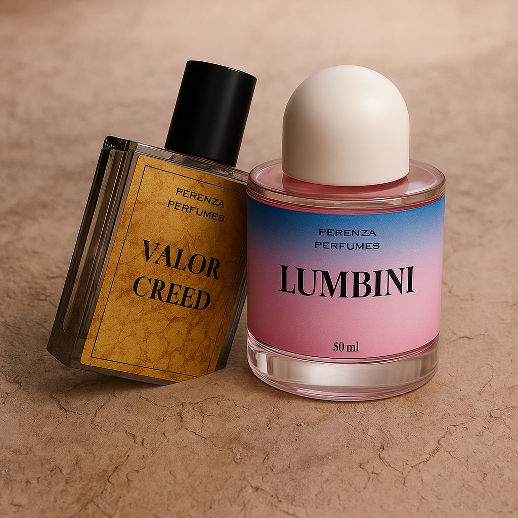 Discover harmony, strength, and elegance with the Lumbini & Valor Creed Bundle from Perenza Perfumes.