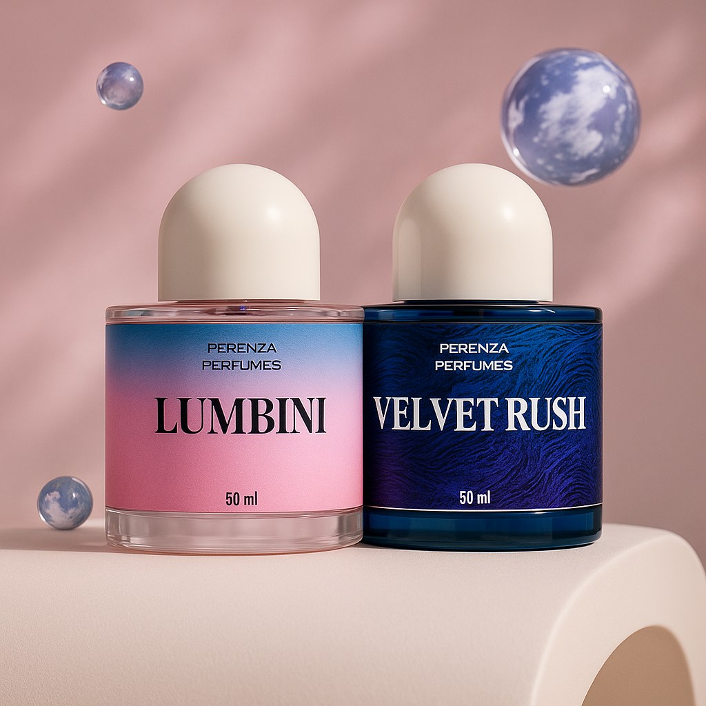 Unveil grace, allure, and charm with the Lumbini & Velvet Rush Bundle from Perenza Perfumes.