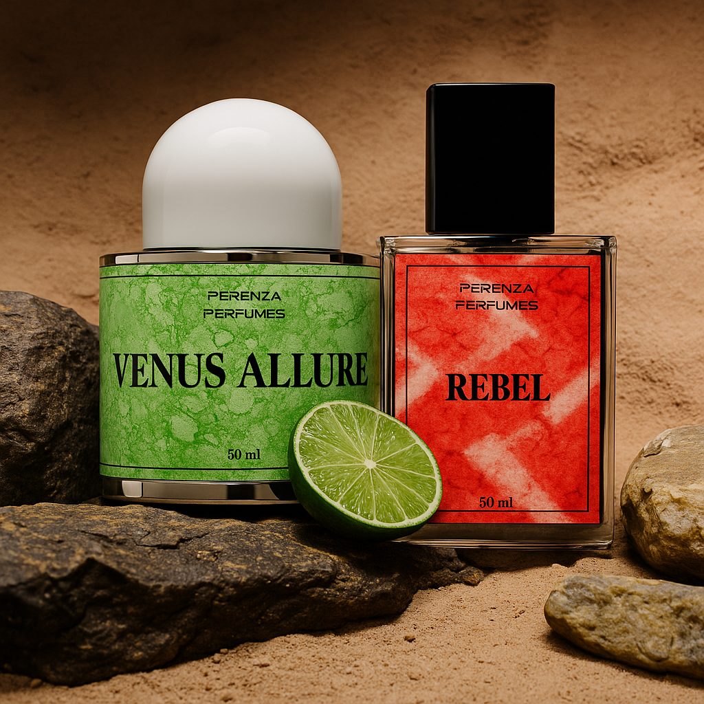 Ignite passion, charm, and individuality with the Venus Allure & Rebel Bundle from Perenza Perfumes.